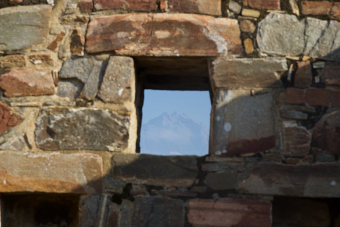 The view from the priests quarters at Choquequirao. The mountain in the window is Pumasillo, which was a mountain diety to the Inca known as an Apu.