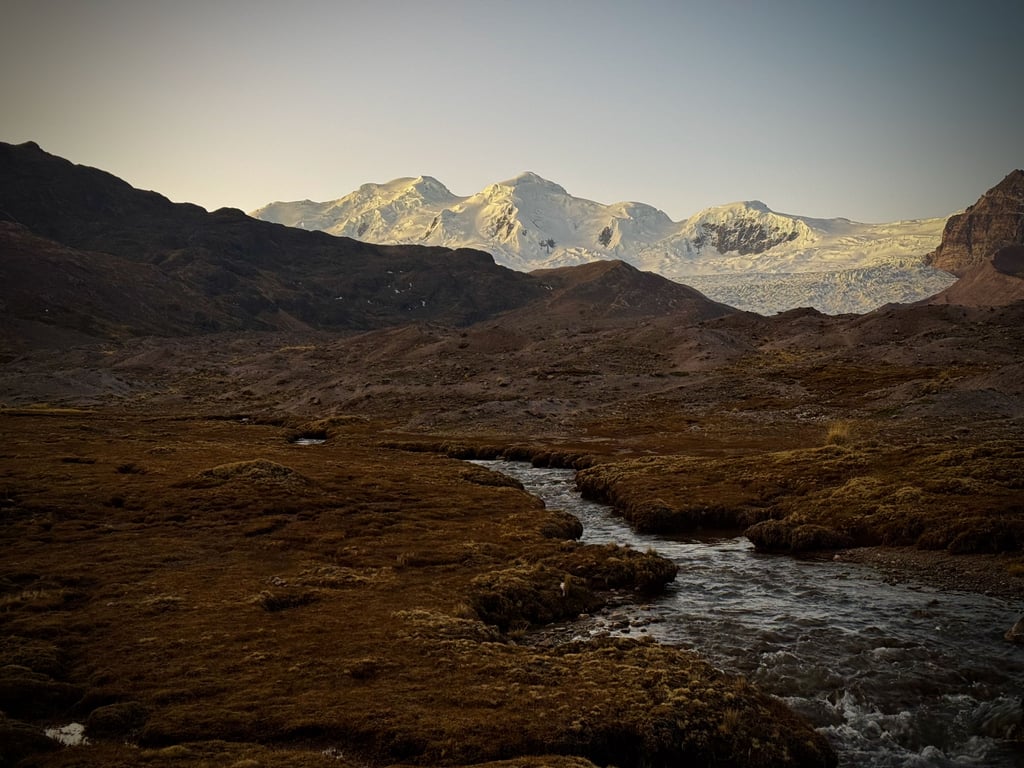 Chumpe is a glaciated mountain in southeastern Peru. It's source of water for Laguna Sibinacocha.