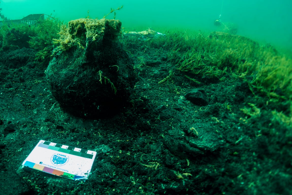 The expedition team documents a pre-Incan ceramic pot in Sibinacocha.